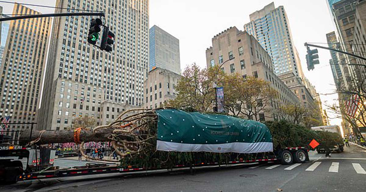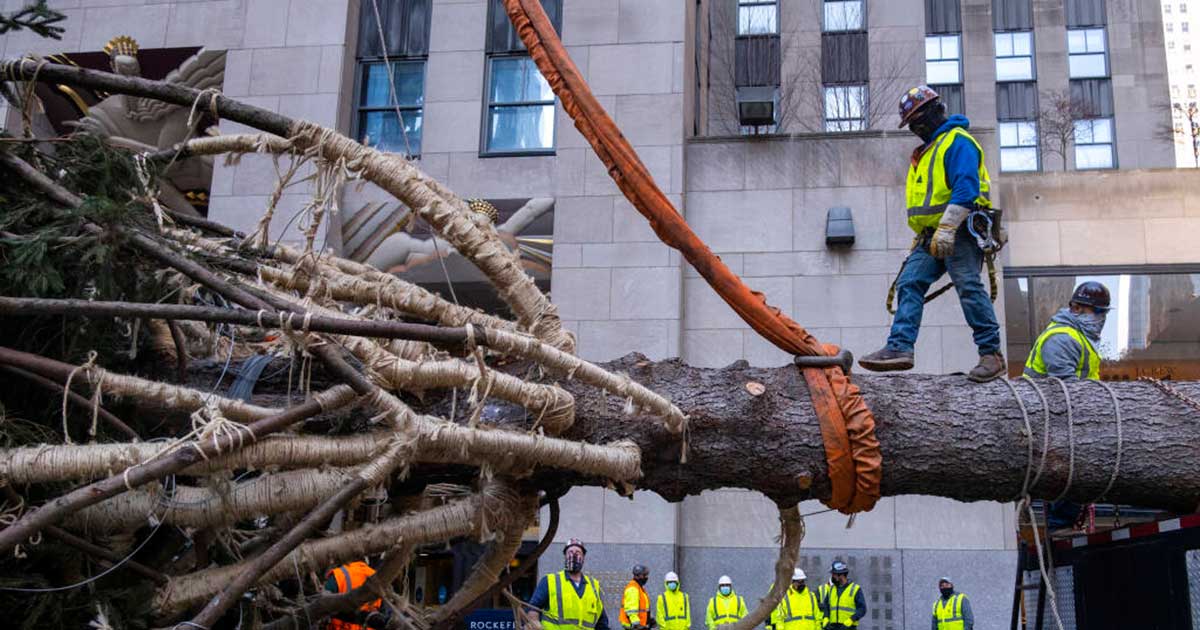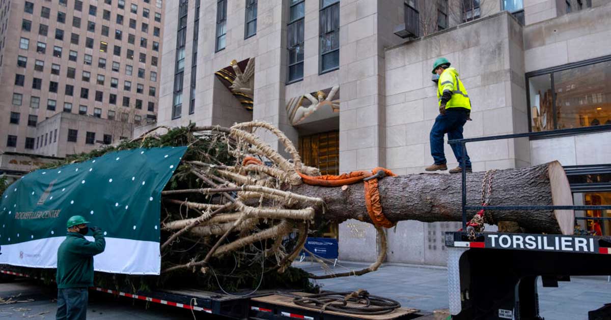 Workers have been setting the tree at the famed plaza ahead of December 2, in which a lighting ceremony was scheduled, that includes musical guests and famous faces kicking off the holiday season.