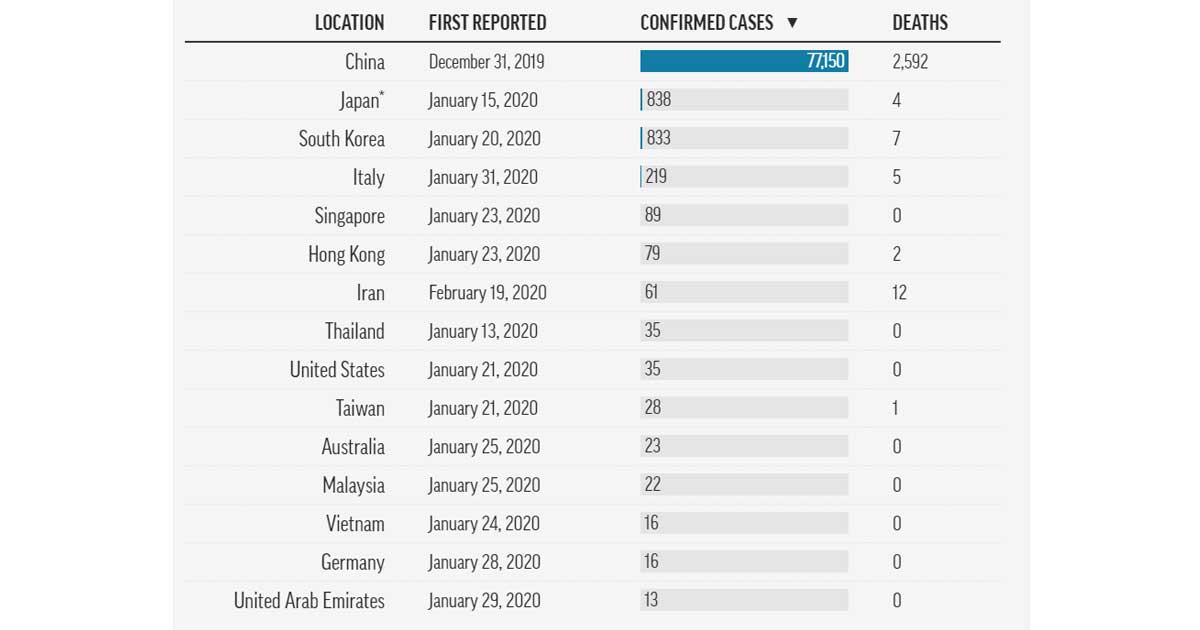 As of February 24, there are 77,150 confirmed cases in the country, with 2,592 confirmed deaths.